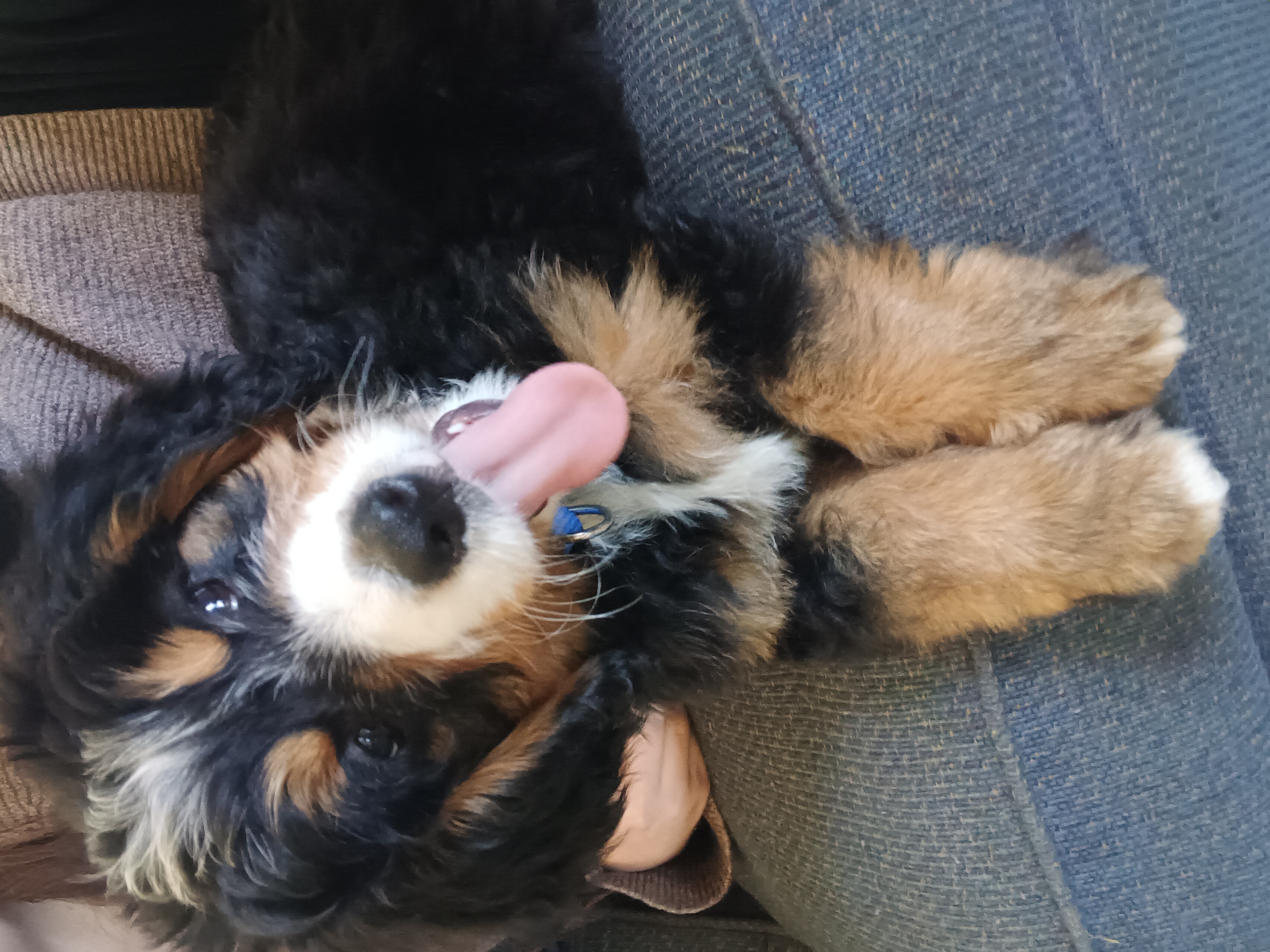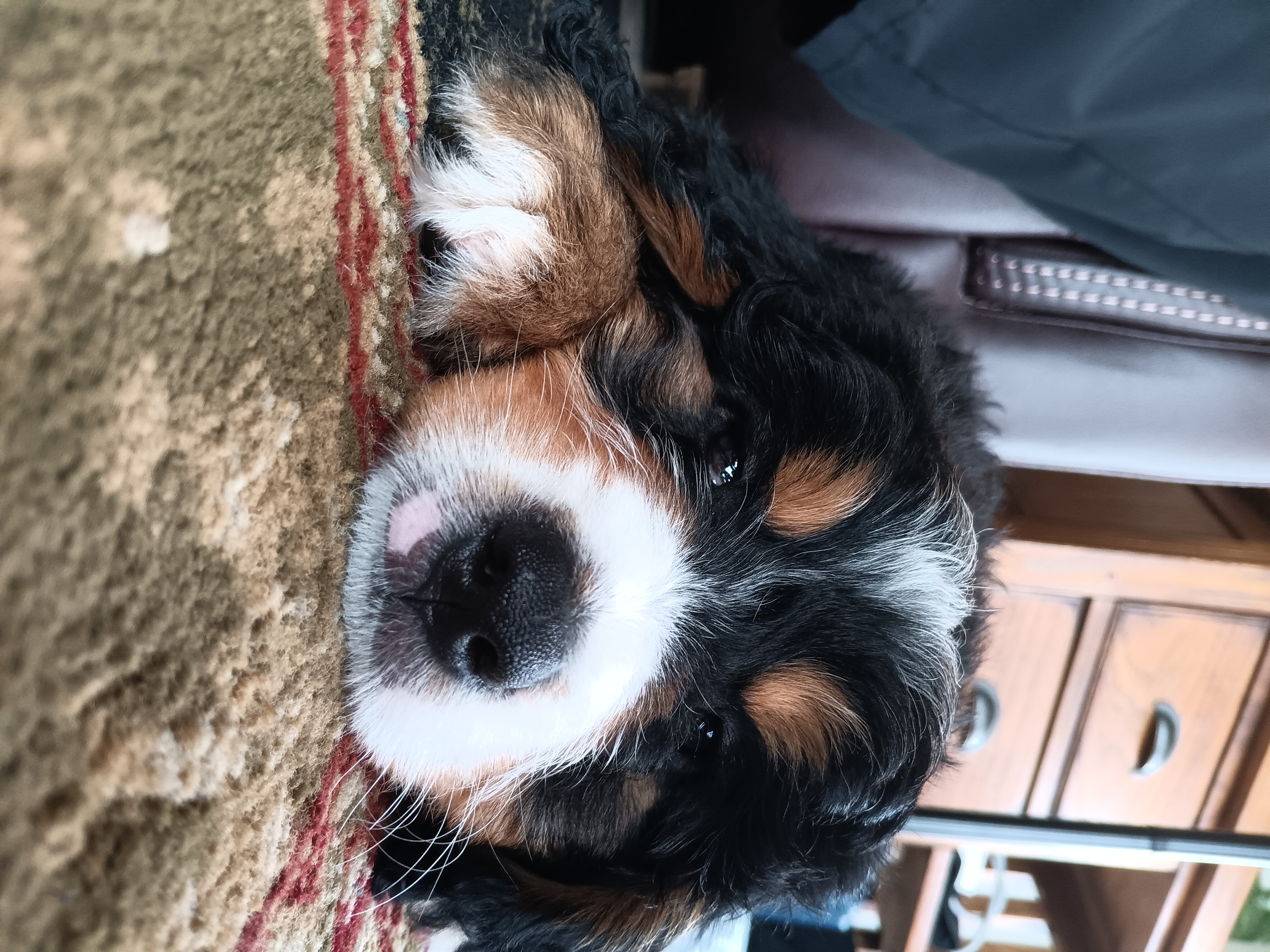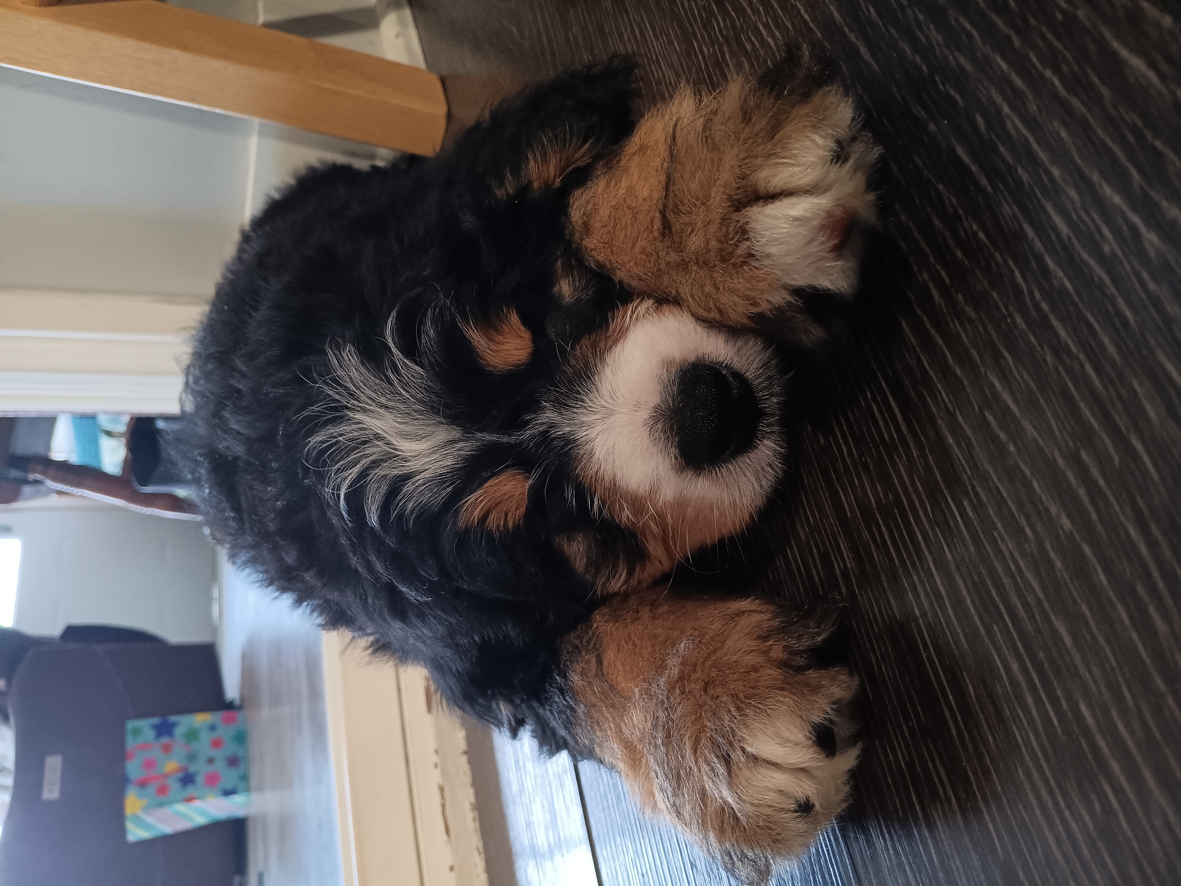 The goal? To make a healthier, longer-lived companion who’s perfect for snuggling on the couch or going on adventures with the family.That’s exactly what I am! I’ve got the calm, loving heart of my Bernese side and the playful, quick-learning brain of my Poodle side. Most days you’ll find me being a total goofball — zooming around with my toys one minute and then flopping over for belly rubs the next. We Bernedoodles are known for being incredibly affectionate, gentle with kids, and great with other pets. We love attention, cuddles, and being part of the family pack.